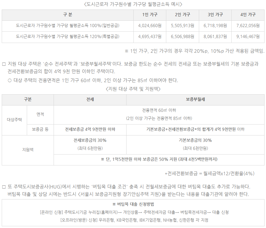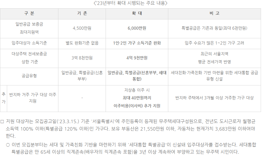 2023년 서울시 장기안심주택 주의점, 지원대상, 지원내역