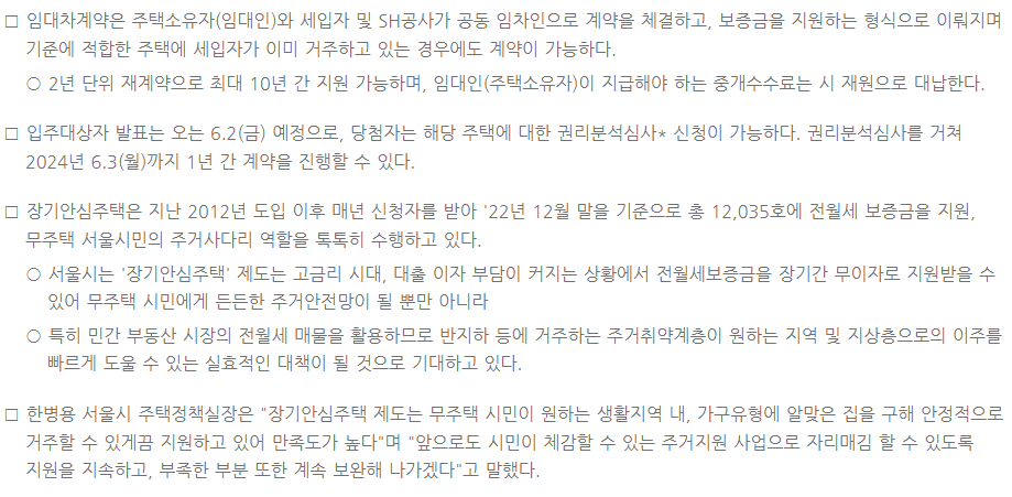2023년 서울시 장기안심주택 주의점, 지원대상, 지원내역, 지원혜택 핵심 요약