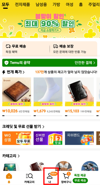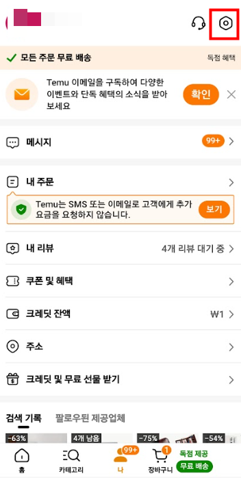 1. 테무 쇼핑 앱을 열어 하단의 '나'로 들어가세요.