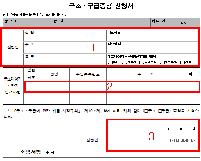 4) 이때 본인이 직접 가면 신분증만 가져가면 됨( 구조 구급증명 신청서는 소방서에 비치되어 있음)